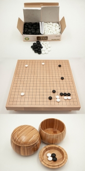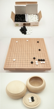 36mm Buchenfurnierbrett mit Füßen / Yunzi-Steine / Lindendosen XL, hell