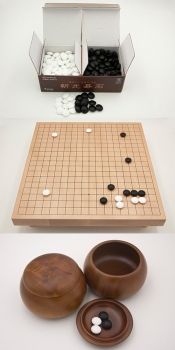 36mm Buchenfurnierbrett mit Füßen / Yunzi-Steine / Lindendosen XL, dunkel