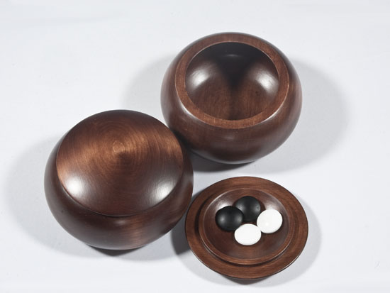 Kleine, dunkle Holzdosen aus Lindenholz für ein 13x13-Brett, geeignet für achtzig 21,5x8mm Steine.