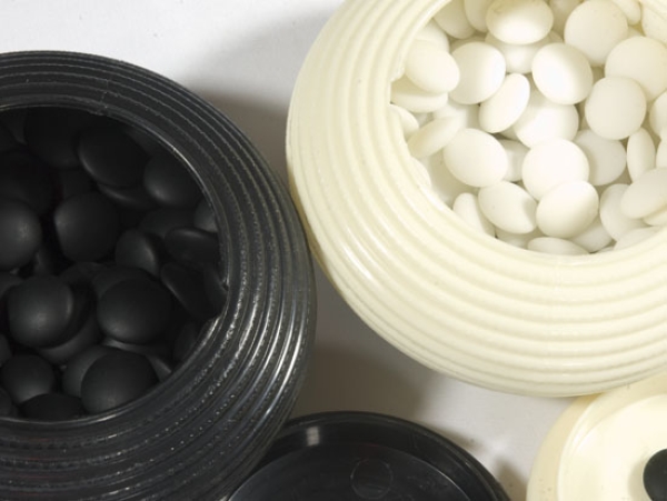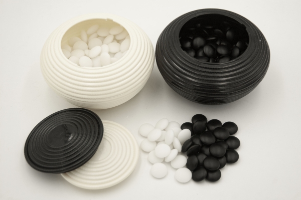 Hinweis: Schwarze Go-Steine sind in der Regel matt und können beim Transport leicht zerkratzen. Daher werden sie bei der Herstellung leicht eingeölt oder eingepudert, um sie gegen solchen Schäden zu schützen. Durch Reinigen der Steine mit Wasser oder einem feuchten Tuch können der Ölfilm oder das Puder leicht entfernt werden. Scharfe Reinigungsmittel sollten (insb. bei Schiefersteinen) nicht verwendet werden.