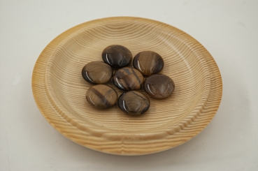 Tigerauge ist ein Quarz, der für seine faszinierende Chatoyanz bekannt ist, die dem Streifenmuster auf einem Tigerfell ähnelt. Yellow Tiger Eye hat eine gelbe bis goldene Farbe mit charakteristischen goldenen bis braunen Streifen oder Wellen. Der Edelstein kann ein schimmerndes, seidiges Aussehen haben. Das Tigerauge zeigt einen optischen Effekt namens Chatoyanz oder Katzenaugeneffekt. Dieser Effekt entsteht durch feine Fasern im Inneren des Steins, die bei Lichteinfall einen leuchtenden Streifen erzeugen, ähnlich dem Auge einer Katze. Tigerauge wird oft als Stein der Stärke, des Mutes und des Gleichgewichts betrachtet. Es wird angenommen, dass er Selbstvertrauen fördert und Schutz vor negativen Energien bietet. Aufgrund seiner schönen Farben und des Katzenaugeneffekts wird Yellow Tiger Eye häufig in Schmuckstücken wie Anhängern, Halsketten, Armbändern und Ohrringen verarbeitet.