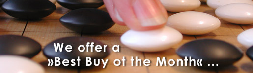 With us, the board game Go, originating from East Asia, is the focus! In our online store we carry Go boards, Go stones and Go boxes in a large selection as well as selected Go sets at discounted prices. We also offer a very extensive range of German and English Go books.