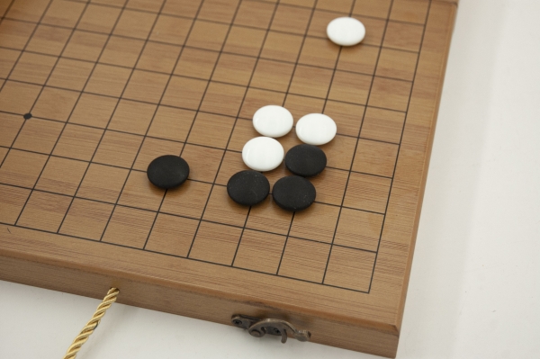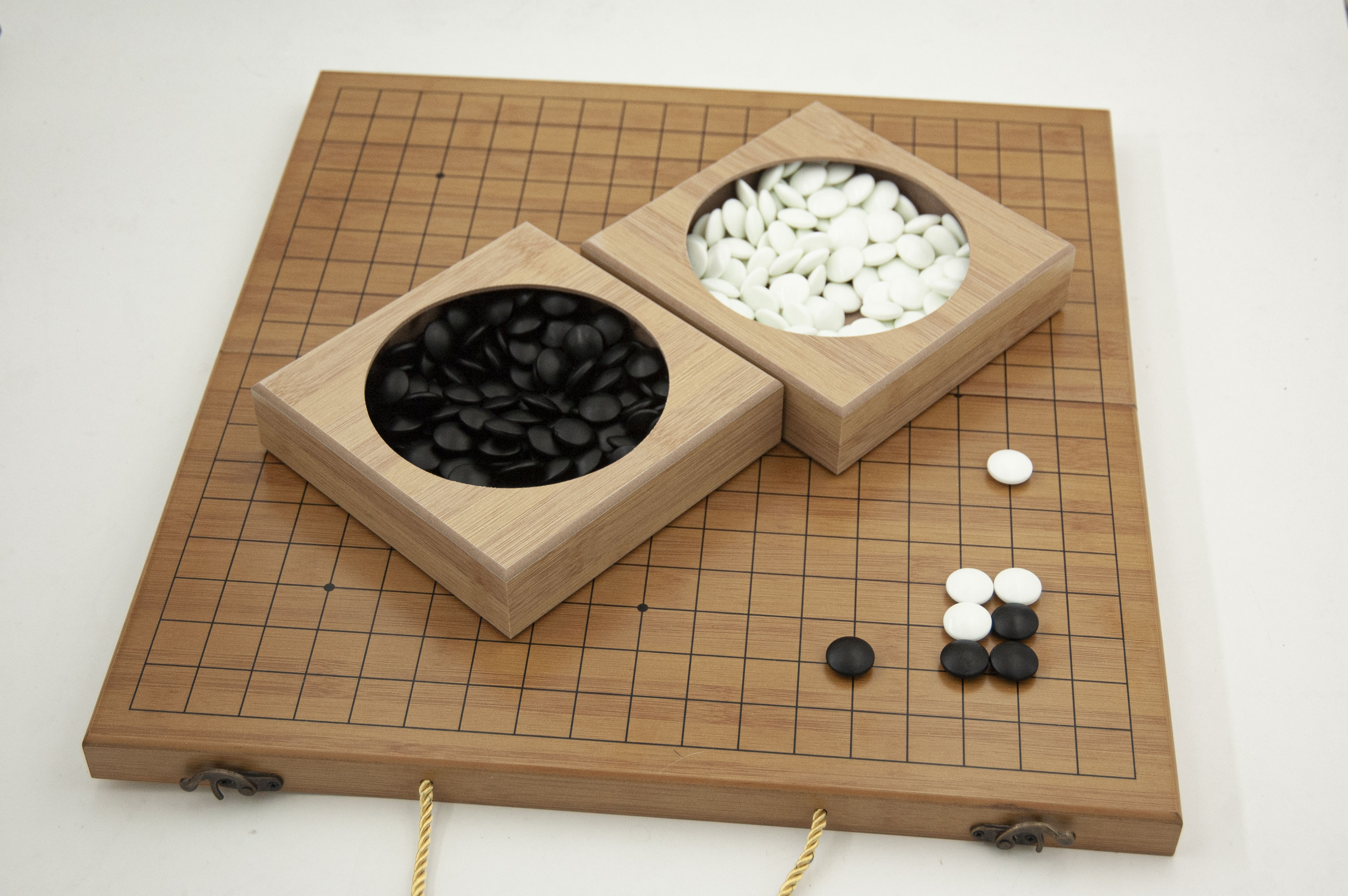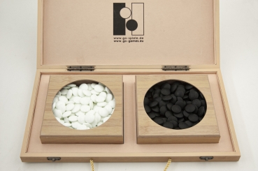 Practical, flat box with 19x19 board, including two small boxes for Go stones.
