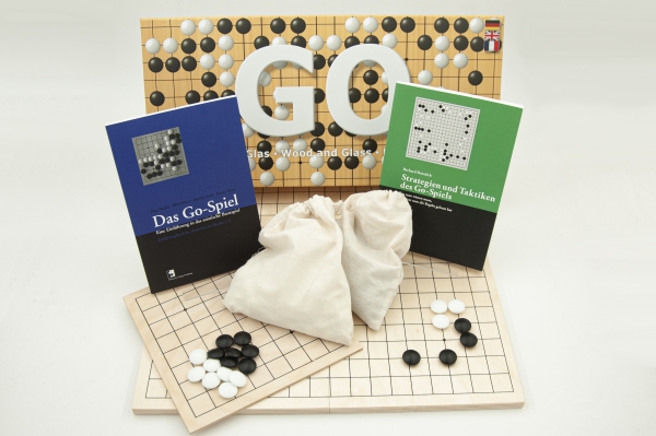 Unsere Go-Box enthält ein gut verarbeitetes 19x19-Holzklappbrett (12-br014) aus 11mm Multiplex Birke, 8mm-Glassteine (12-st005) sowie ein Regelheft (11-hv002). Alles zusammen in einem stabilen, dekorativen Spielkarton ist ein wunderbares Geschenk für alle, die Go kennenlernen und spielen möchten!