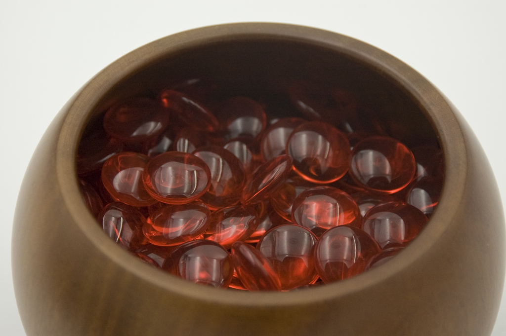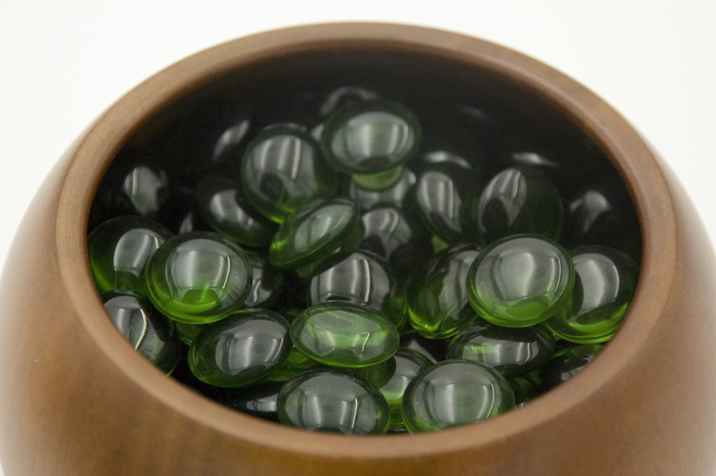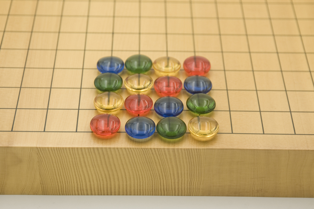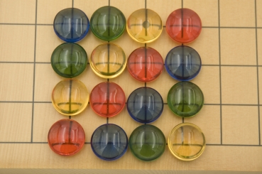 40 (9x9) or 180 (19x19) colored high quality Go stones, made of glas, 21,5 x 10 mm.